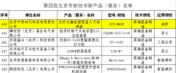 继我公司图像产品荣获“北京市第四批新技术新产品(服务)证书”后,“光纤光栅线型感温火灾探测器” 也通过了由北京市科委、市发展改革委、市经济信息化委、市住房城乡建设委、市质监局、中关村管委会组成的新技术新产品(服务)认定小组的认定,被入选“北京市第四批新技术新产品(服务)名单”可享受政府采购和推广应用等政策支持。本次被入选,充分证明我公司高水平的自主研发和产品创新能力,表明了我公司光纤产品的科技实力也跃上了新的高度!