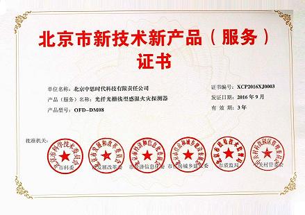 继我公司图像产品荣获“北京市第四批新技术新产品(服务)证书”后,“光纤光栅线型感温火灾探测器” 也通过了由北京市科委、市发展改革委、市经济信息化委、市住房城乡建设委、市质监局、中关村管委会组成的新技术新产品(服务)认定小组的认定,并荣获“北京市新技术新产品证书”,可享受政府采购和推广应用等政策支持。此证书的获得,充分证明我公司高水平的自主研发和产品创新能力,表明了我公司光纤产品的科技实力也跃上了新的高度!