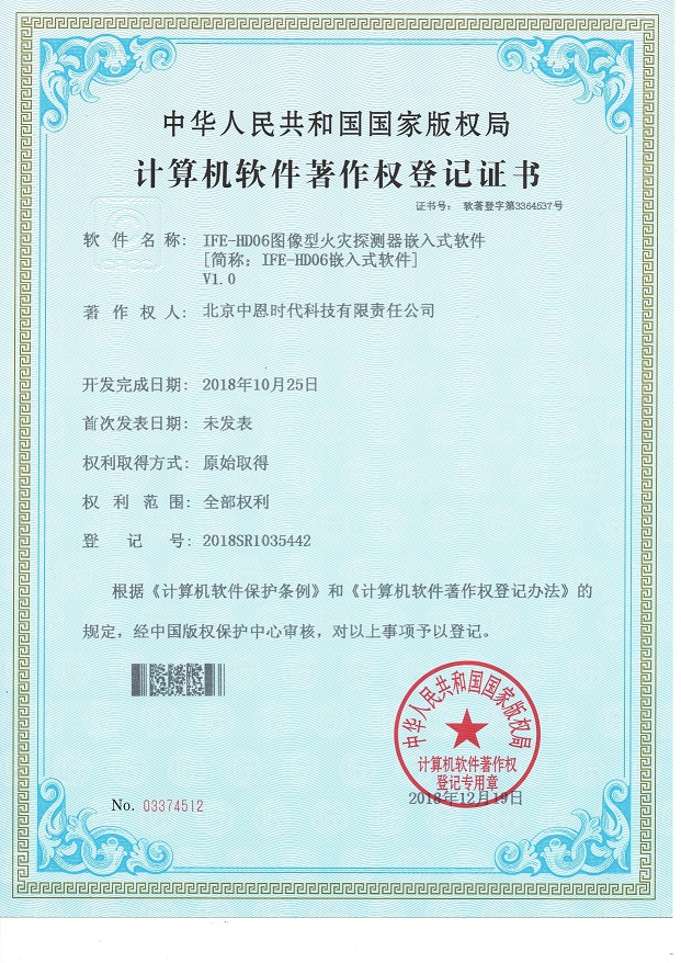 近日公司自主研发的新产品IFE-D02(S)线型光束感烟火灾探测器嵌入式软件、IFE-HD06高清图像型火灾探测器嵌入式软件获得中华人民共和国国家版权局颁发的计算机软件著作权登记证书。标志着我公司自主知识产权取得新突破,再创佳绩,充分展示了我公司高效的自主研发能力和持续的自主创新能力。