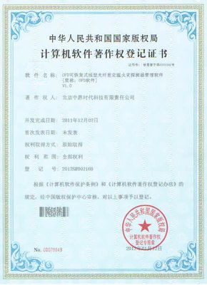 2012年1月12日,公司自主研发的OFD可恢复式线型光纤差定温火灾探测器管理软件获得中华人民共和国国家版权局颁发的计算机软件著作权登记证书。该软件著作权登记证书的获得,标志着我公司自主知识产权获得更新的突破。