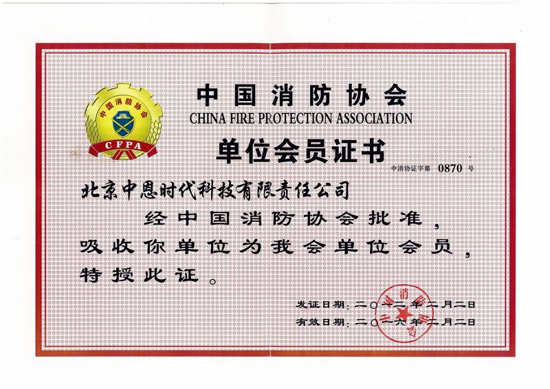 2012年2月2日经中国消防协会批准,我公司已正式成为消防协会单位会员,并获得了“中国消防协会单位会员证书” 。公司入会后将参加和支持协会活动,履行会员义务,为消防协会及行业发展做出贡献,同时实现企业发展。