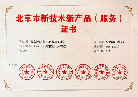 我公司“嵌入式图像型火灾探测器” 通过了由北京市科委、市发展改革委、市经济信息化委、市住房城乡建设委、市质监局、中关村管委会组成的新技术新产品(服务)认定小组的认定,并荣获“北京市新技术新产品证书”,可享受政府采购和推广应用等政策支持。此证书的获得,充分证明我公司高水平的自主研发和产品创新能力,表明了我公司的科技实力跃上了新的高度!